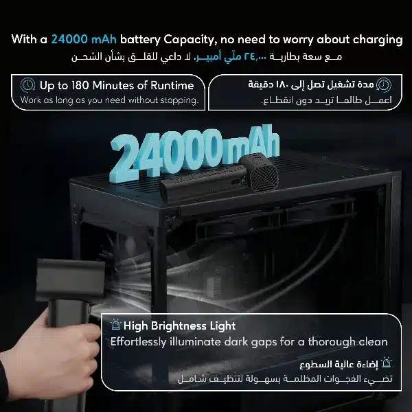 🔋 بطارية 24,000mAh (6×4000mAh) تدوم حتى 180 دقيقة ( 3 ساعات) حسب السرعة.