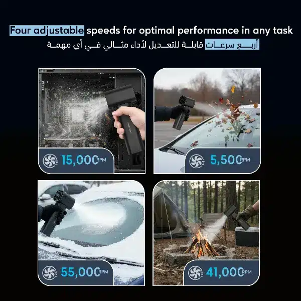 🎯 يناسب جميع الاستخدامات : تنظيف الغبار، الورش، التخييم، تجفيف السيارات, والتبريد السريع.