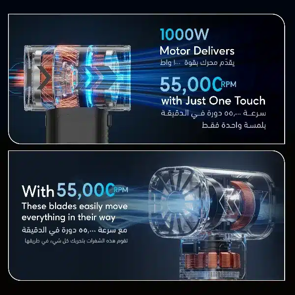 ⚡️ محرك قوي 1,000 واط يوفّر تدفق هواء فعّال ومناسب لمختلف الاستخدامات.